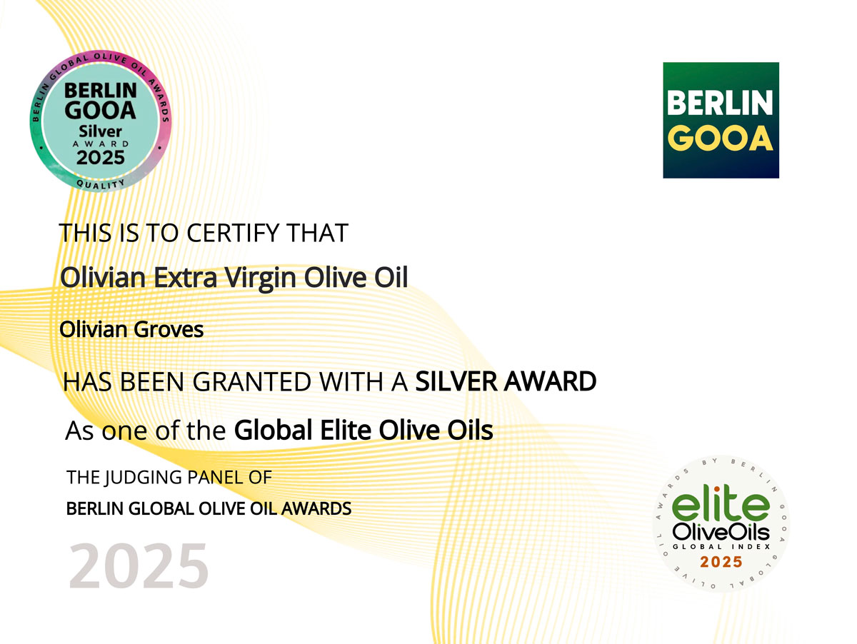 OLIVIAN EVOO received the Silver Award at the Berlin GOOA 2025, adding another international distinction to the brand’s award portfolio.