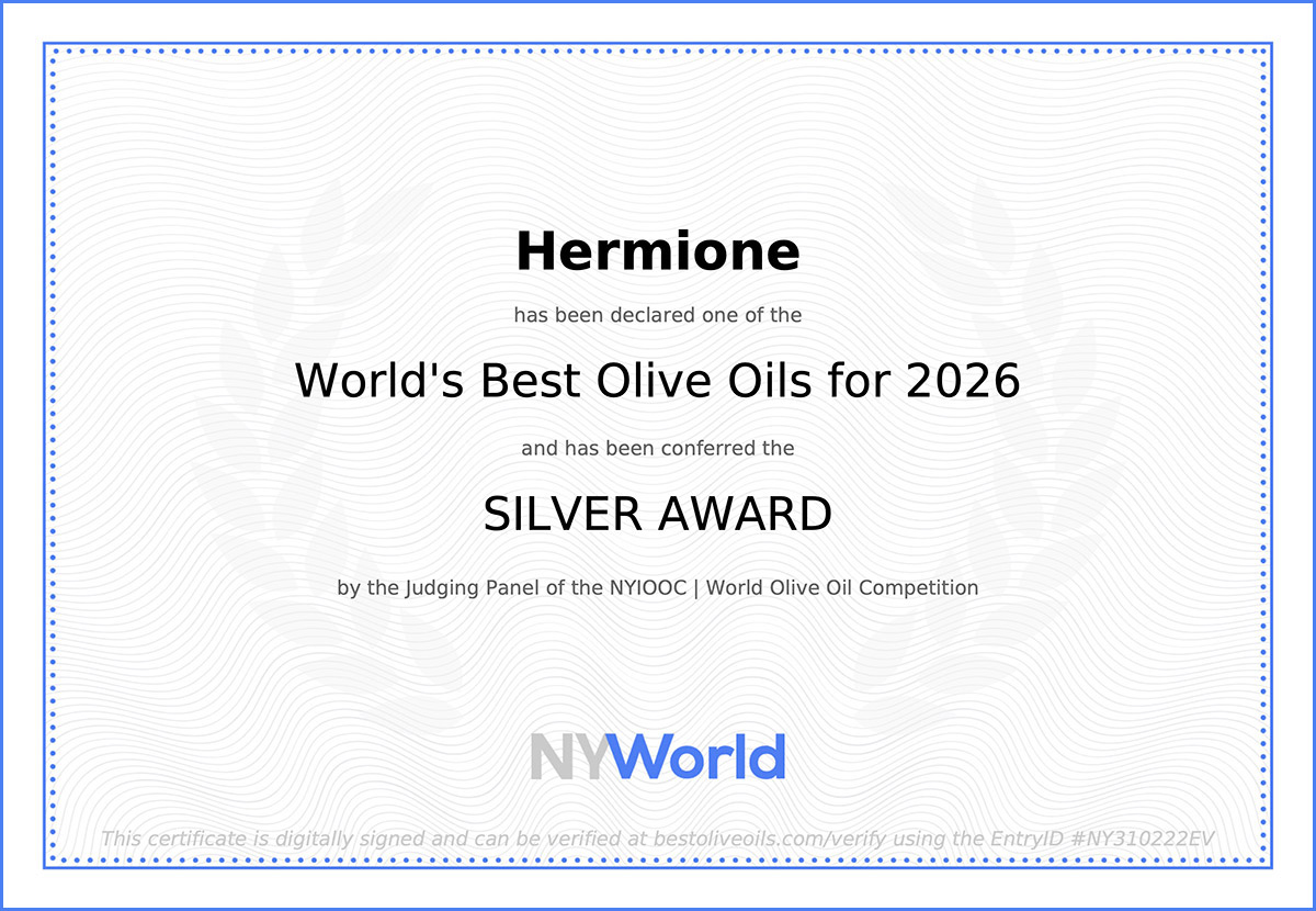 Olivian Groves’ HERMIONE Single Estate Extra Virgin Olive Oil continues to earn international praise, bringing home another distinguished honour for its exceptional quality and character.